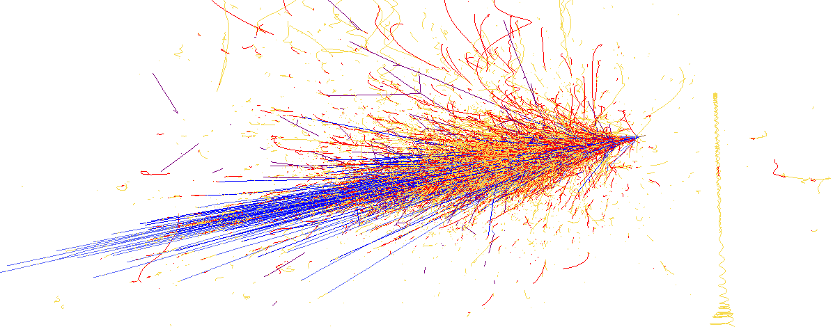 energy around 10 TeV. Minimum track energy is 500 keV.